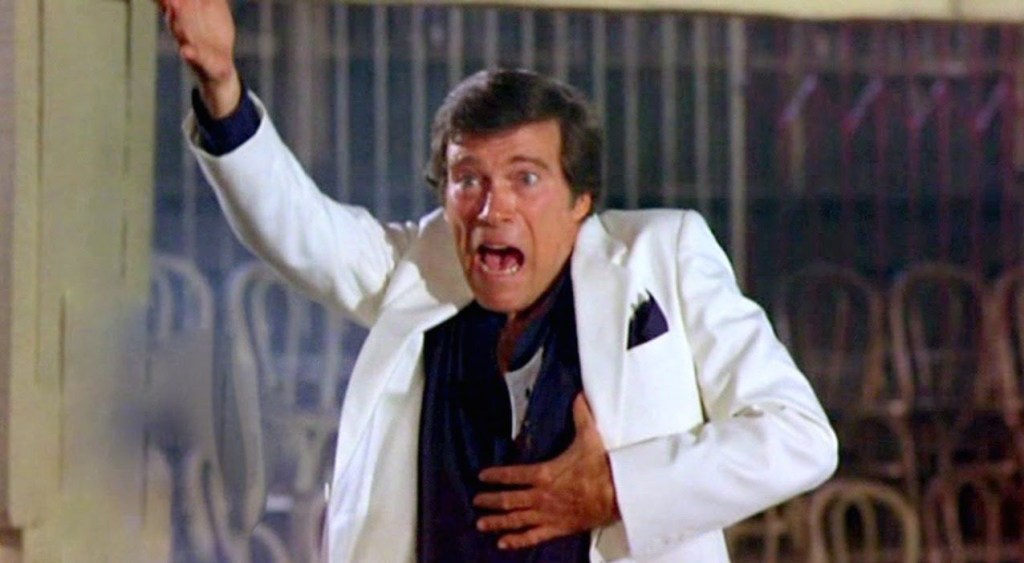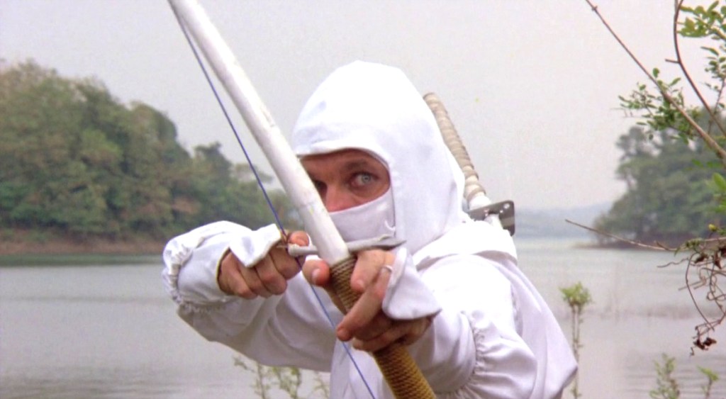 Though Cannon’s follow-up, Revenge of the Ninja was both better and sillier, Enter the Ninja is still a fair movie and certainly better than the vast majority of ninja films that would follow in its footsteps. Golan’s direction is pedestrian and uninteresting, but it gets the job done. His big flirtation with style is to play the “wah wah wah wahhhhh” comedy punchline music when Cole rips off Sigfried’s hook hand and throws it to him with the stinger, “Hey! You forgot something.” Nero is not very convincing as a master of the martial arts, but he is convincing as a fist-swinging bad-ass. The plot has its fair share of goofiness, of course, but at the heart of things is a predictable though time-tested story about the greedy developer picking on the innocent. The silliness stems mostly from the fact that Cole and Hasegawa feel the need to thrown on their ninja uniforms for the big finale. What’s the point? All the bad guys already know who Cole is, and everyone knows who Hasegawa is as well. What’s the point in wrapping your head up in a sight-restricting hood to hide your identity? Nothing looks sillier than a guy in a white ninja suit stepping out of a Cadillac. Wait, did I say “sillier?” I meant, “more awesome.”