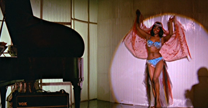 The leader’s fabulous outfit is simply one part of the overall beautiful look of the film. The budget may have been smaller than a Bond budget, but it seems to have been larger than the average Eurospy film, or at least better used. It’s full of eye-popping color and space-age decor. The Skeleton Gang’s lair is a thing of beauty, an amalgamation of every swanky space station, secret lair, and bachelor pad ever seen on the screen. When the film isn’t traipsing about the labyrinthine corridors of the evil lair, it’s reclining in an exotic lounge, parading through lovely Thai travelogue footage, and otherwise taking advantage of the fact that Shaw Brothers productions knew how to throw together some beautiful sets. Best of all, the mysterious treasure turns out to be actual treasure, and not some note that says, “Peace on Earth” or something.