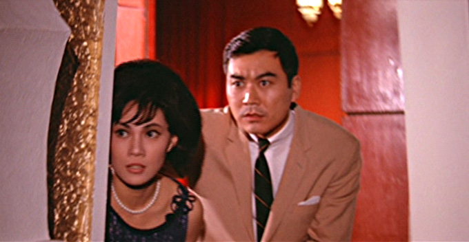 Our more modest heroine is Jeanette Lin Tsui as the sister of Paul’s murdered friend and possessor of one-third of the Golden Buddha‘s secret (her older brother has the other third). What Jeanette lacks in terms of Fanny Fan’s bombshell appeal she more than makes up for with an enchanting beauty, graceful demeanor, and plenty of elegant 1960s dresses. She’s not nearly as active as your better Bond girls from the same time. Jeanette’s damsel-in-distress is less interesting for her lack of ability, but she at least cracks a vase over a guy’s head and, as far as I remember, never trips and falls while running away from the bad guys. That’s got to count for something.