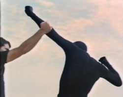 Not that gratuitous boob shots would have helped this movie — they just wouldn’t have hurt. But a couple fun fights and the coy promise of flesh aren’t always enough to salvage a film, and Phenomenal and the Treasure of Tutankhamen has more problems than can be compensated for with those meager table scraps. Phenomenal himself is an obvious rip-off of Diabolik, minus the menacing cool streak, hot girlfriend, awesome lair, and cool collection of cars. Where as Diabolik makes love on a rotating bed covered in stolen hundred dollar bills, Phenomenal seems more likely to find a penny stuck to his ass after he’s finished jerking off on the couch. He may stand like Diabolik, and laugh like Diabolik, and wear the Wal-Mart Halloween costume version of Diabolik’s outfit, but Phenomenal is certainly no Diabolik. But that’s OK since Ruggero Deodato is no Mario Bava. Phenomenal and the Treasure of Tutankhamen never achieves that phantasmagoric, sprawling, big budget feel that Diabolik managed without a big budget. Everything here feels small and uninspired.