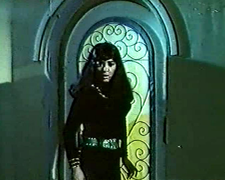 What also distinguishes these Telegu films from the aforementioned Pakistani films is their reliance on the same hyper-real color schemes prevalent in many Bollywood films from the 70s, which further serves to take their violence out of the realm of the real and further into that of an especially bloody Tex Avery cartoon. My thesaurus is going to prove redundant here, because there are just so many ways you can call something “cartoon-ish” or “comic book-like” – and I’ve just used them all. The problem is that those two phrases sum up the look and feel of movies like Rani Mera Naam so perfectly that to use alternates would sacrifice clarity. Rani Mera Naam doesn’t make this situation any easier by so obviously drawing upon equally comic book influenced European films for its look, bringing to mind, among others, Modesty Blaise, Danger: Diabolk and even, to some extent, a bit of Jess Franco “Red Lips” films. And this is without mentioning its debt to some of the more surreal Spaghetti Westerns. So let’s just say that you’ll have to forgive me if I end up repeating myself a bit.