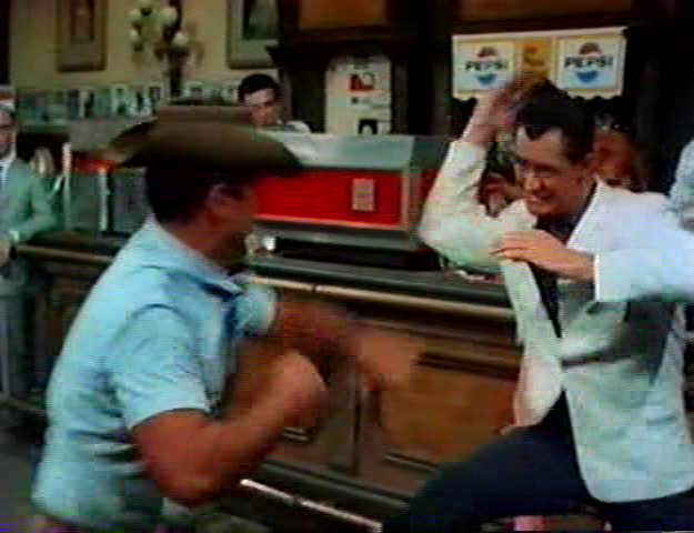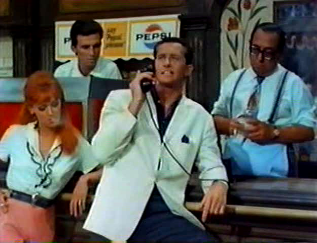 Our introduction to Marc Andrews comes on what appears to be a repurposed saloon set from whatever spaghetti western was at a break in filming at that particular moment, where Andrews is in the process of having a fistfight with some random guys because — well, because that’s just the kind of guy that Marc Andrews is. The bar phone rings, and it’s Andrews’ superior telling him that he has to go “to Europe” immediately for an assignment. “To EUROPE?”, Andrews responds incredulously, as if unaware that said fabled continent was readily accessible by commercial air travel. Soon, however, his objections are quelled, and he agrees to cut short his vacation in Frontierland and report for duty — partly, he says, because he had always wanted to go to Europe.