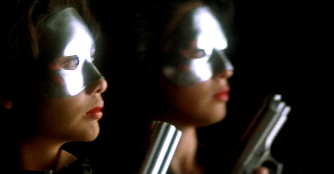 Kitty is played by the actress Chingmy Yau, here saying goodbye forever to the nice girl roles that she had played previously and embarking on her career as one of HK cinema’s biggest sex symbols of the 90s. Yau was the girlfriend of the married Wong Jing at the time, and the producer had — and would continue to — cast her in a number of his films, including, in the wake of Naked Killer‘s success, quite a few Cat III titles. Intimations of the casting couch aside, it’s easy to see why this was. Yau is a star with enormous sex appeal, and, in Naked Killer the camera just can’t get enough of her. Cinematographer William Yim takes great care to insure that no opportunity is missed to milk the beautiful star’s every pose and gesture for all of its fetishistic potential, whether she be zipping herself in or out of some picturesquely restricting pleather or spandex garment, or suggestively wielding an automatic weapon.