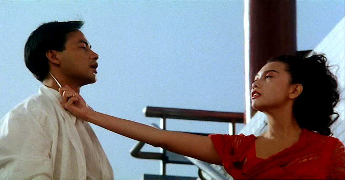 Clarence Ford has said that his primary inspiration in making Naked Killer was Shaw Brothers director Chor Yuen’s 1972 film Intimate Confessions of a Chinese Courtesan, while Wong Jing had wanted a Hong Kong version of the recent American hit Basic Instinct. Interestingly, the finished product does, to some extent, come across as a combination of Chor’s more refined and elegant approach to eroticism and Paul Verhoeven’s coarser one. Though I think that, in the end, Chor Yuen won out. Ford was uncomfortable with filming sex scenes, as well as with requiring nudity of his actresses, and so kept both to a minimum (certainly by Cat III standards, at least). He compensated for this by conveying sensuality through lushness of atmosphere and luxuriousness of texture, along with a voyeur’s obsessive focus on the physical beauty of his actors. In other words, by an engagement with the truly erotic. Dated 1990s fashions and trip hop music notwithstanding, I don’t think anyone can deny that Ford’s is a movie that’s oozing with a potent sexuality — one of the type that only gains intensity by it’s proximity to mayhem.
