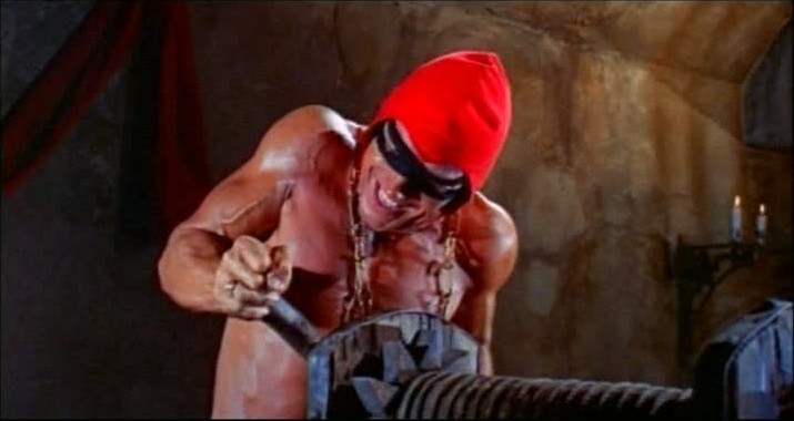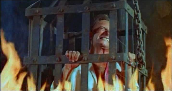It is this last diabolical implement that proves the Executioner’s undoing, as he haplessly finds himself within its fatal embrace at the tail end of a prolonged fist fight with Rick. “My perfect body in the poisonous clutches of the Lover of Death!”, he exclaims, and more pithy last words may never have been spoken. I would’ve liked it if he had also added, “Oh, the irony!” But I have to admit the moment is perfect as is.