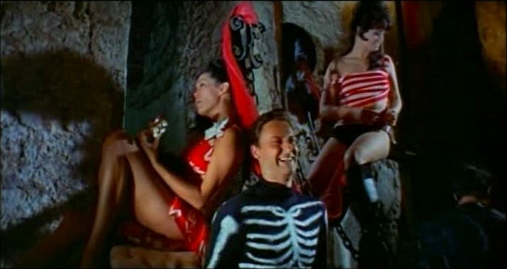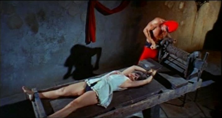 So, in short, yes, I would indeed take those old magazines’ vision of a raw, explosive masculinity — one that could only be unleashed once all femininity had been safely tied up to the nearest idol — over the smug, self-regarding date rapists who seem to smirk out at me from between every line of the newer model. There’s a kind of virtue to that kind of crassness, crudity and uncultured-ness, not the least being that you know it’s never going to sneak up on you from behind a mask of civility. This is something that I’d like to think Italian director Massimo Pupillo’s 1965 shlock horror masterpiece Bloody Pit of Horror understands implicitly — even celebrates, if that title is any indication.