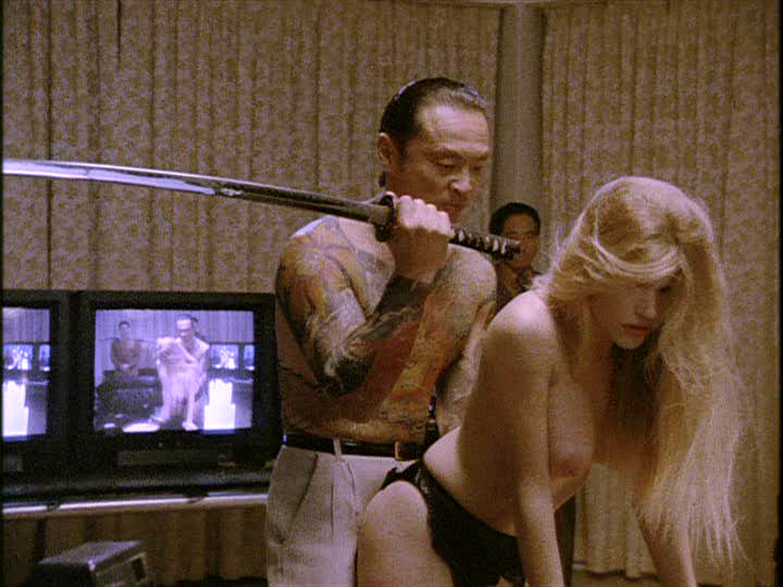 The demolition attracts the attention of a wandering cop named Johnny Murata (Brandon Lee), which is odd since almost no other action in the film, no matter how massive or destructive, will attract the attention of any cops until it is all conveniently over. Murata and Kenner, naturally, can’t stand one another at first but are nevertheless forced to work together on a case that involves hunting down murderous, drug-dealing beer magnate and yakuza clan chief Funekei Yoshida, played by America’s most dependable villainous Asian, Cary-Hiroyuki Tagawa. Not only does Tagawa traffic in meth and eye-searingly gaudy silk shirts, he also runs prostitution rings, gets his jollies by decapitating women while having sex with them, and just because none of that makes him evil enough, he also murdered Kenner’s parents when the towering cop was a child.