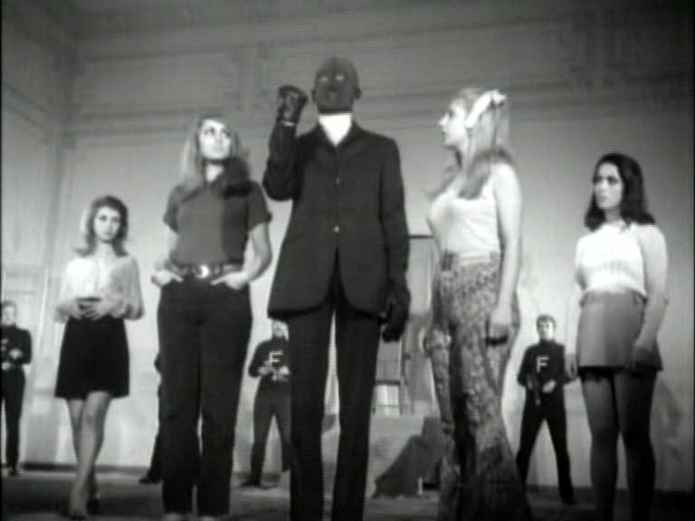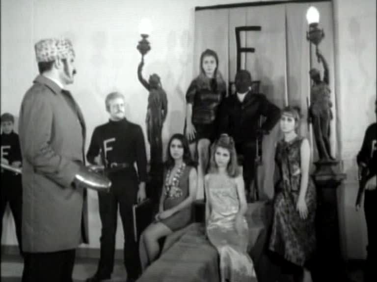 Like other Turkish movies of the period, Iron Claw the Pirate was made without recourse to even the most primitive optical effects. (To put it in perspective, the documentary included with the DVD mentions how Inanc wowed the Turkish film industry in the early 1970s with his pioneering use of slow motion.) The titles are printed on cards, and a scene in which Fantomas and his gang address their Turkish counterparts via a two-way TV screen is accomplished by having the actors stand behind a facade with a screen-shaped hole cut in it.