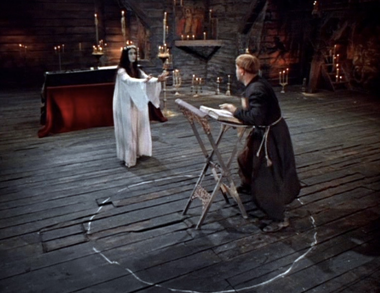 When he arrives in the village, much to Khoma’s shock, but not really to ours, the dead girl is the very same one he left dying in the swamp after bludgeoning her. Making matters more horrifying is that the locals seem to know, or at least suspect, that she was a witch in league with the devil. Khoma hopes this provides him an out for spending three nights alone with her corpse in a creepy, run-down old chapel. Unlucky for Khoma that to her father, a daughter’s dying request is a daughter’s dying request, blood-sucking witch or not. And so Khoma is bustled off by his hearty new chums and locked in the chapel for the first of his three fateful nights with the dead girl — who, naturally (supernaturally), is not quite so peaceful as one hopes the dead to be.