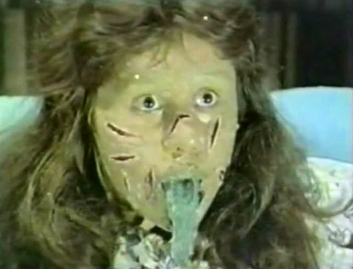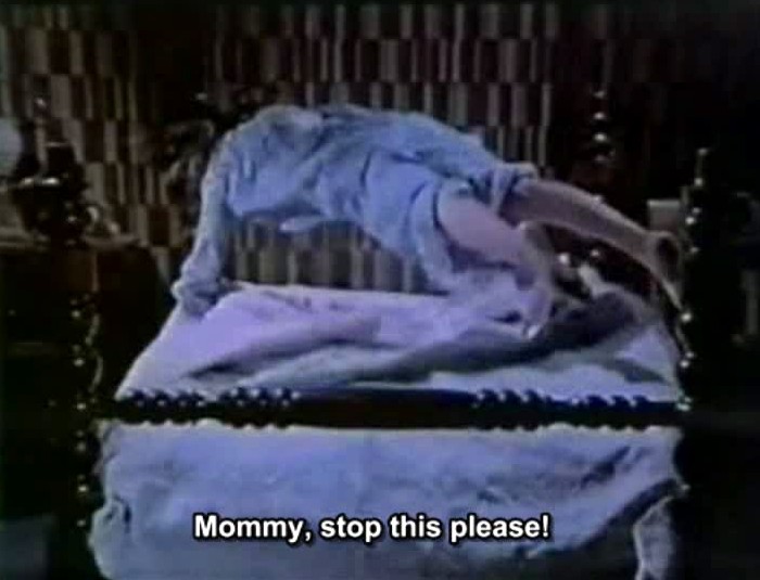 Okay, I can at least say that Seytan is not capable of _replacing_ The Exorcist, but I imagine you guessed that already. As for whether it would be entertaining for someone who had never seen The Exorcist, I imagine it would be, though it certainly wouldn’t be as much fun. There’s just so much enjoyment to be had in playing compare and contrast with it — for instance, in watching the contortions it goes through to avoid the original’s Christian iconography, such as in the scene where a letter opener with a devil’s head on it is substituted for the crucifix Linda Blair uses to penetrate herself. I also enjoyed the old timey language that was substituted for Mercedes McCambridge’s jaw dropping streams of profanity. According to the translation I watched, that includes singling a person out as either an “arrogant crock” or an “old dotard”, among other things, which is pretty excellent.