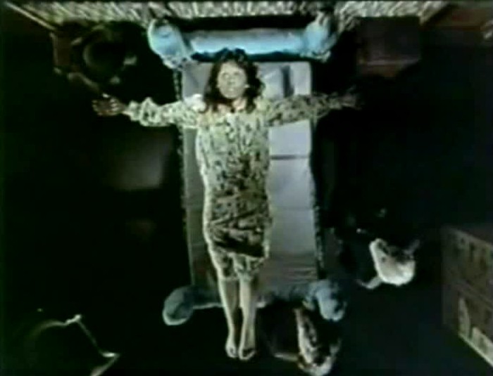 And indeed, there are glaring budgetary shortfalls in Seytan, especially when it comes to the special effects. For instance, the “shaking bed” stunt from the first film is here simply accomplished by having the spread-eagled young actress energetically bouncing up and down on the mattress as best she can, which looks ridiculous — especially once Mom belly flops on top of her and joins in. In addition, a funky, contemporary approach to art direction robs the film of the former’s gothic atmosphere, instead setting the action in a home that looks like it could belong to Turkey’s answer to the Partridge Family.