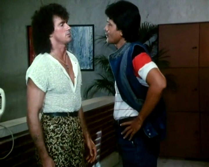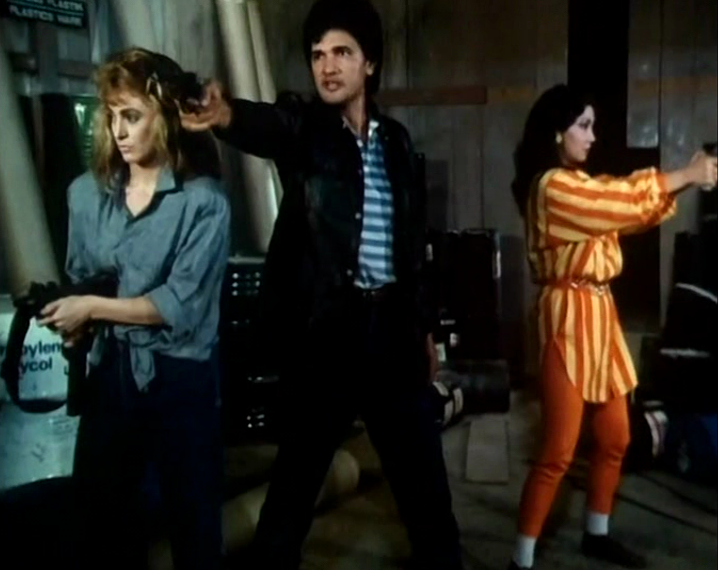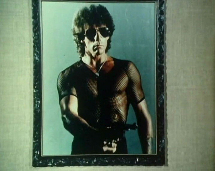 As you have probably already gathered, The Stabilizer is a very silly film, perhaps even silly enough to stand out within the already very silly realm of ’80s action movies as a whole. In addition to what I’ve already catalogued, there’s a scene in which a chaste romantic interlude is inexplicably followed by what appears to be a close up on a woman’s ass crack, only to have a pullback reveal that it is in fact the crook of a man’s arm. (I guess these are the lengths you have to go to suggest onscreen nudity in a predominately Muslim country.) There is also the appearance in more than one location of a framed portrait of Goldson that is obviously modeled upon the image of Sylvester Stallone from the poster for Cobra.
