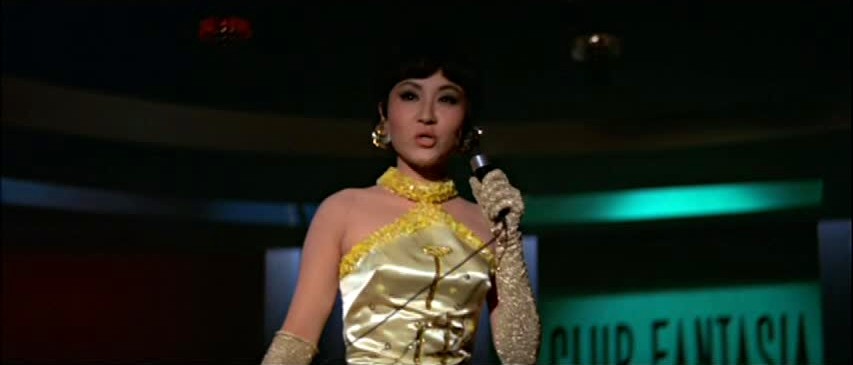 Interpol 009‘s plot tends to depend on happy coincidences to move it along (such as when a room in which Chen is trapped also happens to contain all of the necessary ingredients to make nitro-glycerin) and the first of those coincidences occurs during Chen’s flight from Manila to Hong Kong, where he happens to meet two women traveling separately who both end up being of key importance to the story and his investigation. One is a woman played by Margaret Tu Chuan—who, as far as I could tell, was only referred to by her underlings as “Third Sister” when she was referred to by name at all—who turns out to be the leader of the crime ring’s HK/Manila operation. The other is Pingping, a nightclub singer played by Shen Yi whose boyfriend, we later learn, has gotten on the wrong side of the gang by embezzling ten thousand dollars worth of counterfeit bills.