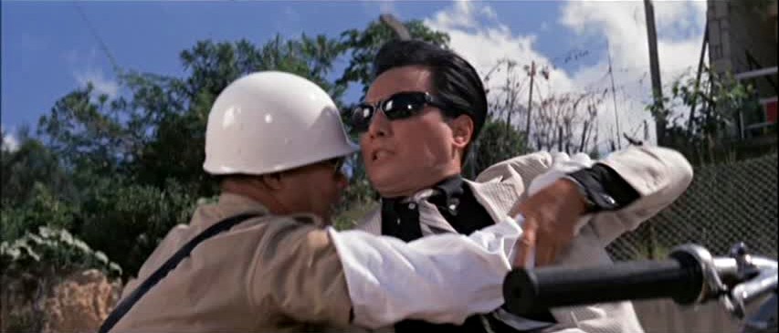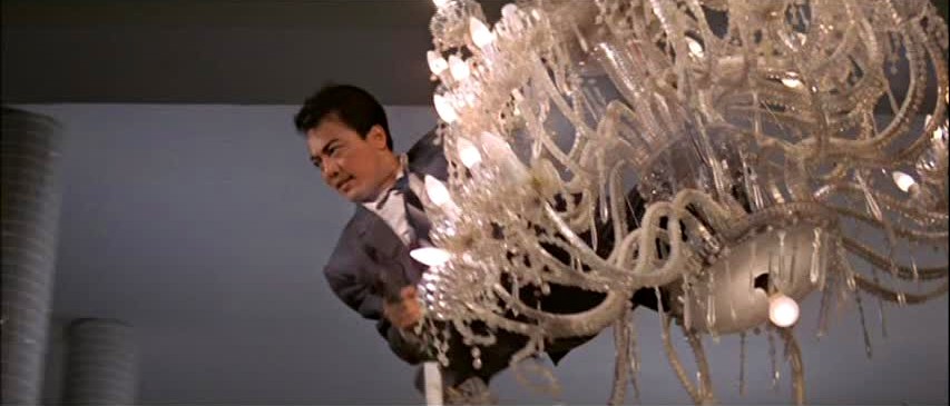 Chen is posing as a professional gambler, and once he arrives in Hong Kong he manages to get himself arrested and thrown in jail as a means of working his way into the HK demimonde. As a result of this episode, he finds himself fitted with a comic sidekick in the form of Huang Mao (a less annoying than he could be Lee Kwan), a local pickpocket and gambler who gains Chen entrance to an underground casino at which patrons play with US dollars. This casino turns out to be one of the gang’s numerous fronts, and Chen’s presence there alerts the hoods to the fact that he’s a problem that needs to be dealt with. Thus is initiated the round of attempted assassinations that Chen must evade while trying to get to the top of the organization’s power structure and locate their money printing operation.