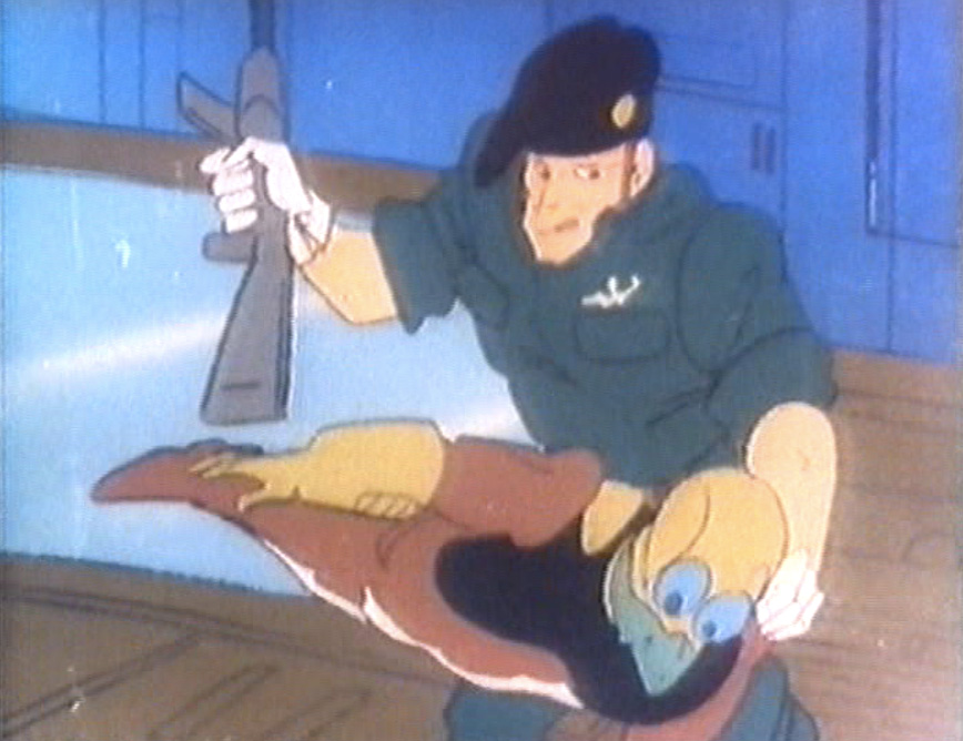 And then we cut to Flint from GI Joe leading a commando raid on…wait. Who the hell is this? Oh, it’s that evil human commander of one of the fleets, the one who presumably got blown up by Tiger SX-3. I guess he escaped somehow, and now it’s up to the commandos to take him down. And just for the hell of it, a bunch of evil giant robots get launched and Solar Mac 1 kicks their asses, only now Solar Mac 1 looks like the second version of Tiger SX-3. Which I guess is only fair since the first time we saw Tiger SX-3 he looked just like Solar Mac 1. When this general discovers the Dark Emperor has been defeated, he surrenders and is forgiven and we all learn a valuable lesson about peace, the abolition of weapons of mass destruction, and how the leaders of the world should bend to the will of the people, and not the other way around.