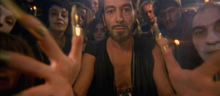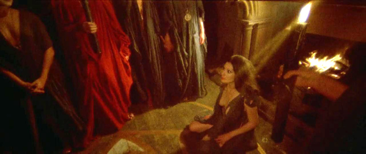 With psychiatry having accomplished nothing, Jane falls under the spell of her neighbor, Mary Weil (Marina Malfatti), who suggests that where science fails, perhaps a nightmarish Satanic Black Mass orgy could succeed. Jane, already a proven fan of dumb decisions (or perhaps just wanting to impress her cool new friend), agrees. The ritual takes place in a big manor on the outskirts of town, and although Jane isn’t entirely enthusiastic, she comes back a second time. Only it turns out that Satanic sex cults aren’t as carefree as she thought, and soon she’s being urged to sacrifice Mary while discovering that the man with blue eyes is part of the coven. It’s at this point that what little grasp Jane had on reality begins to slip away entirely, even as she discovers the source of a freakish nightmare she’s having and uncovers a family secret that links her to this bizarre cult of cavorting devil worshipers.