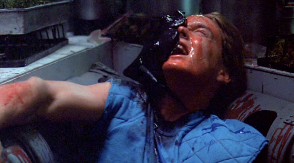 The gore and make-up are quality, and the monster, for the most part, is a pretty good special effect as well. It can’t really move around, but when it’s just smashing its head through glass and bearing its fangs, it’s pretty good stuff. Again, in a year that saw the release of a Steven Spielberg film, Blade Runner, and TRON, the lo-fi practical effects of Forbidden World might not stand up to the test. No, you know what? Scratch that. Forbidden World‘s special effects are not as good as TRON or Blade Runner, but I’d pit them against ET any day of the week. Come on. ET looks like more of a puppet than the mutant in this movie, and that flying bicycle scene? Sure it was magical and inspired all us kids to ride our Huffys off a cliff, but that’s some shoddy special effects work right there. I’d take Forbidden World‘s foam-spewing mutant any day of the week, and Corman and his crew built that thing for less than Spielberg probably spent on those bicycles.